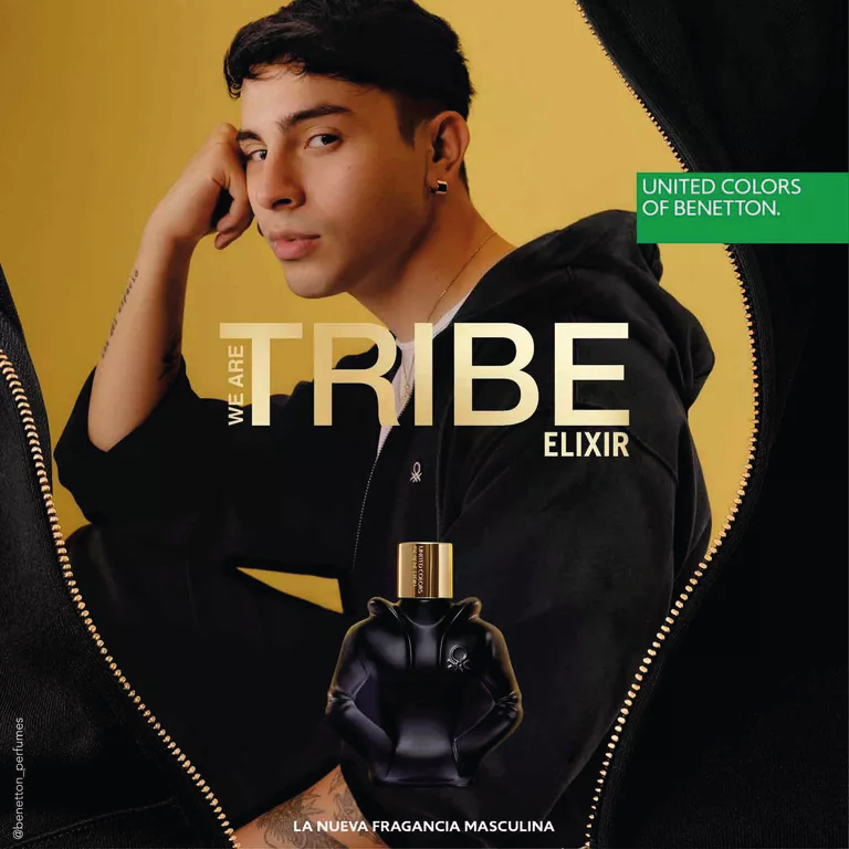 Tribe de Benetton Perfumes es una fragancia contemporánea para quienes creen en el poder de la comunidad. Con cítricos frescos y acordes amaderados terrosos, refleja la masculinidad moderna y la confianza. Familia Olfativa:Ámbar amaderada. Notas de Salida:Pimienta negra, Flor de Azahar, lavanda. Notas de Fondo:Vainilla, cuero, maderas ambaradas. Notas de Corazón:Bálsamo de abeto, Tonka, Jara.