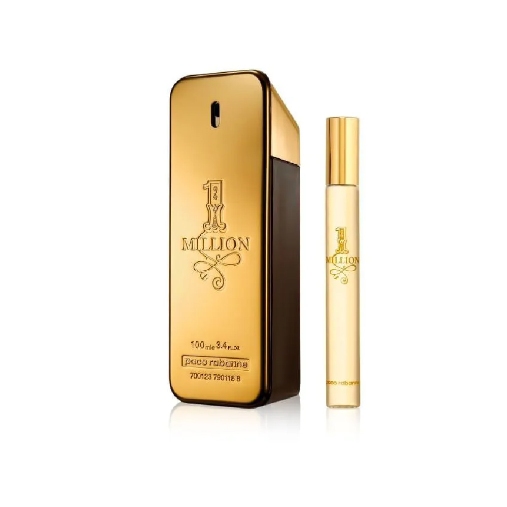 La esencia del éxito. Cuero fresco con un sutil toque picante. Seduce y luego conquista. Sus notas de canela y rosas, junto a las de maderas blancas, aportan masculinidad y elegancia. Menta y mandarina jugosa, dulce y picante. Sensualidad prolongada de rosa y canela. Cuero natural y ámbar. Disfruta del peligro y presume de tu carácter. Intriga, conquista y, finalmente, consigue. Esos son los principios de One Million a través de su mezcla de elementos dulzones, picantes y frescos.