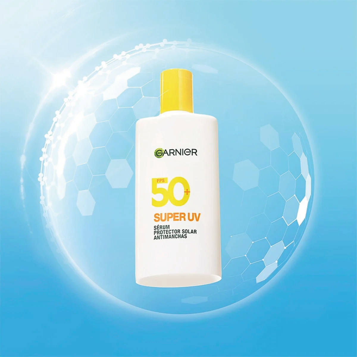Con Garnier Super UV Fluido obtén una protección solar facial diaria. Sin oleosidad ni trazos blancos. Con textura ligera, FPS 50 y Vitamina C. Aporta luminosidad gracias a la vitamina C que actúa como antioxidante y combate las manchas causadas por el Sol.