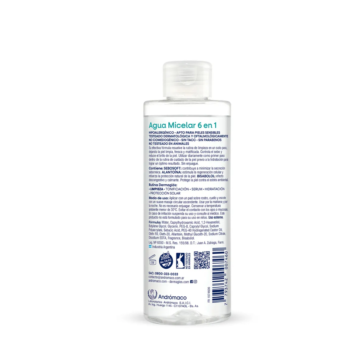 DERMAGLOS AGUA MICELAR P PIEL MIXTA A GRASA X 200 ML.