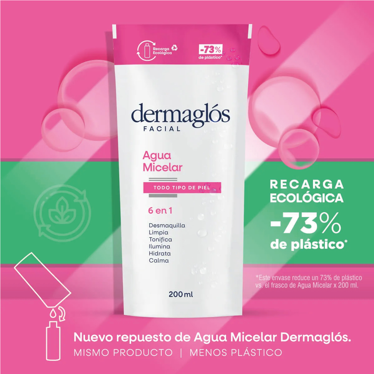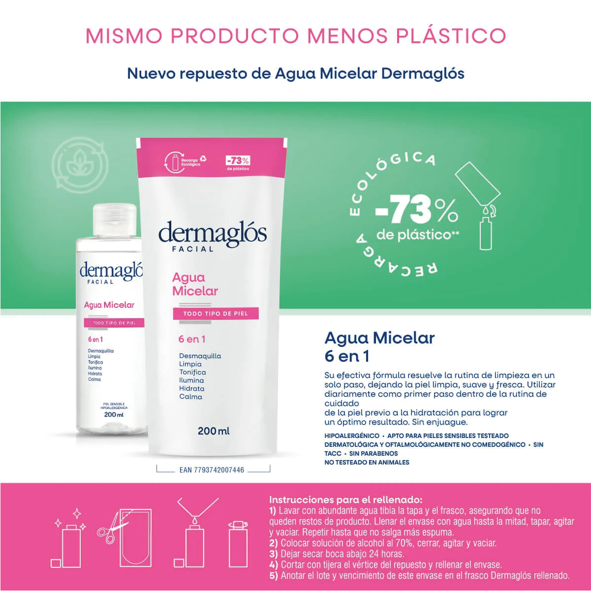 DERMAGLOS AGUA MICELAR REFILL 6 EN 1 X 200 ML.