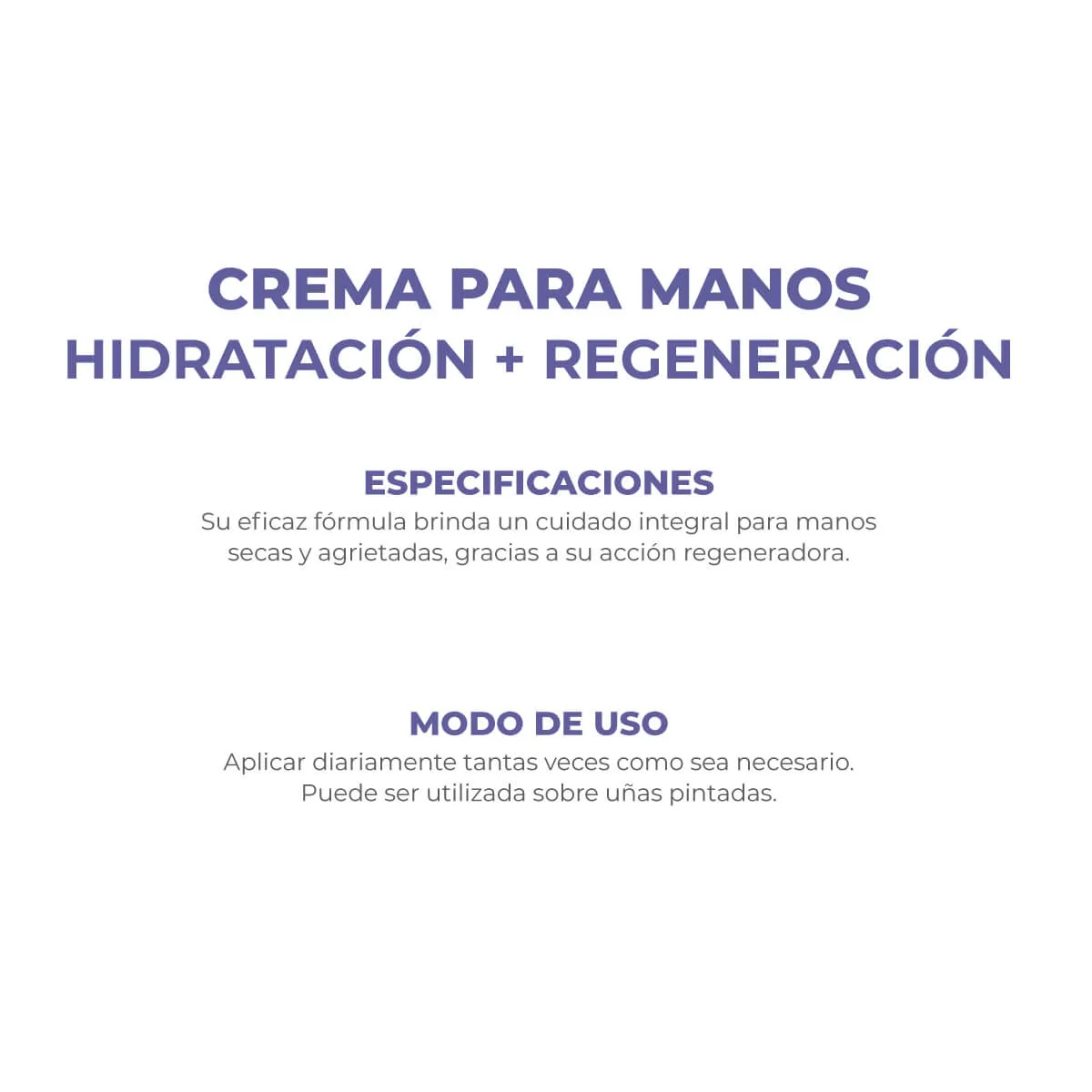Su eficaz fórmula brinda un cuidado integral para manos secas y agrietadas, gracias a su acción regeneradora. Hipoalergénico – Apto piel sensible – Testeado dermatológicamente – Sin TACC – Sin parabenos – No testeado en animales